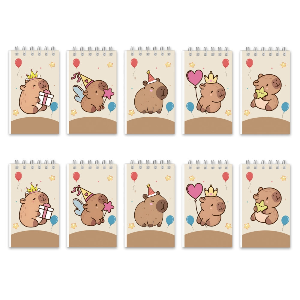 10 Pack Pocket Notebook Small Spiral 10 * 6CM Mini Notepad Princess Kids Colorful Memo Bulk Wired Lined for School Office Supplies Birthday Party Bag Fillers (Capybara)