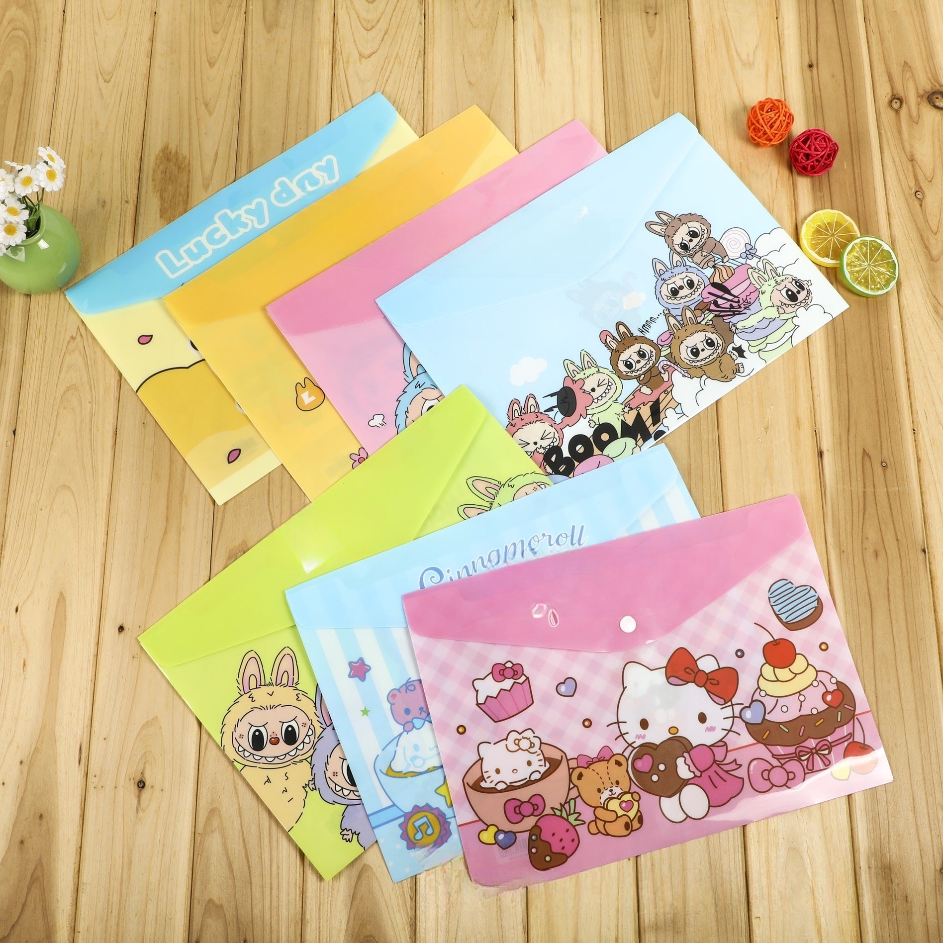 4PCS Plastic Wallets A4, 4 Different Designs Plastic Folders Popper Folder with Snap Closure, Lightweight Wallets for Document Office School for Kids Adults (Kuromi 4pcs, A4)