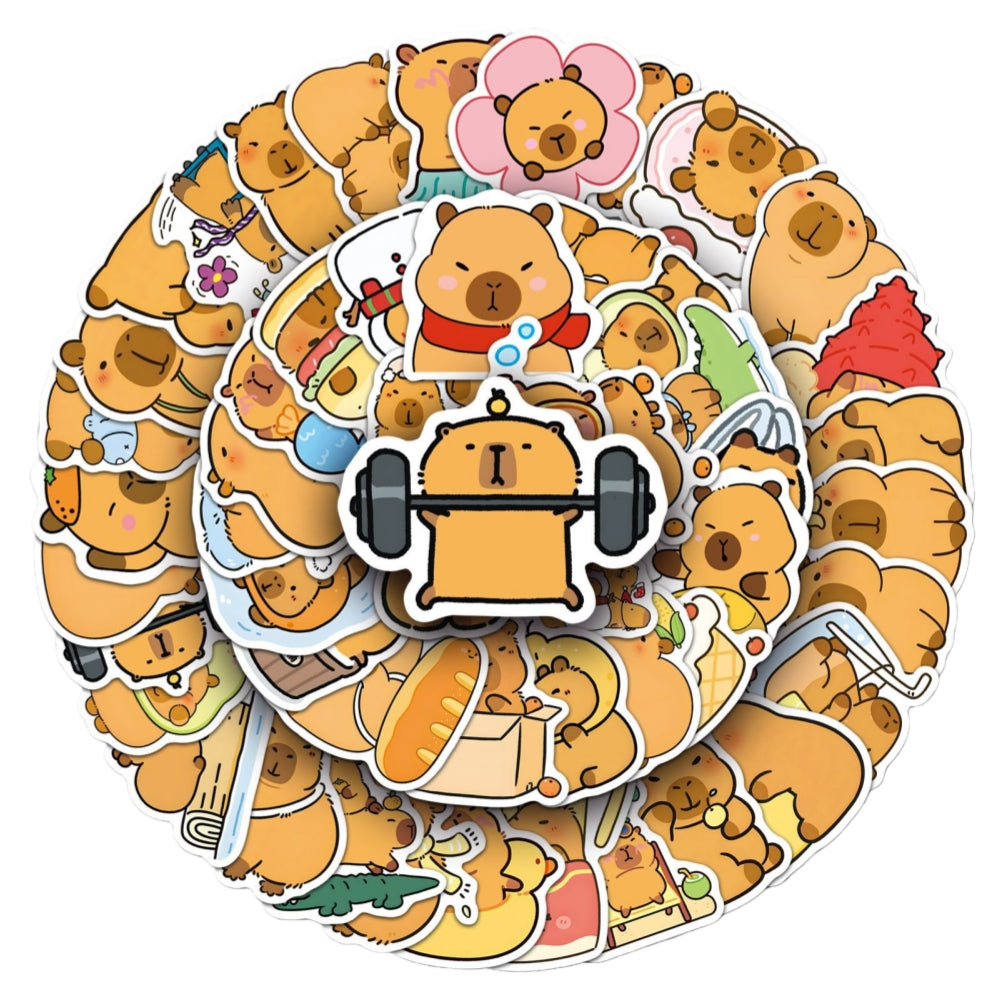 50pcs Princess Aven Superheros Toy Kids Stickers Luggage Laptop Skateboard Waterproof Party Bag Fillers Waterbottle Decal Graffiti Patches(Capybara)