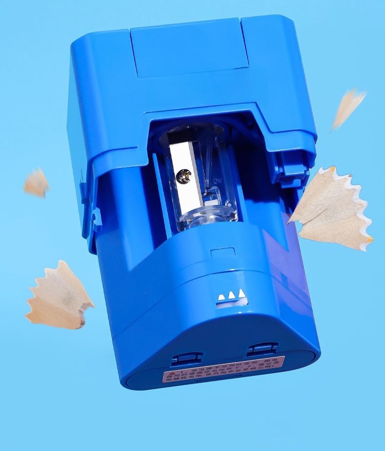 - 【Automatic Sharpening】The electric sharpener for kids uses electric drive. Simply insert the pencil, apply a little pressure to push the pencil down, and the sharpener will quickly sharpen the pencil within 5 seconds. The sharpener will automatically stop working when the pencil is removed, eliminating the hassle of manual turning. This makes sharpening faster, more efficient, and saves time and energy. In addition, there is a protective cover for the blade to ensure safety during use.