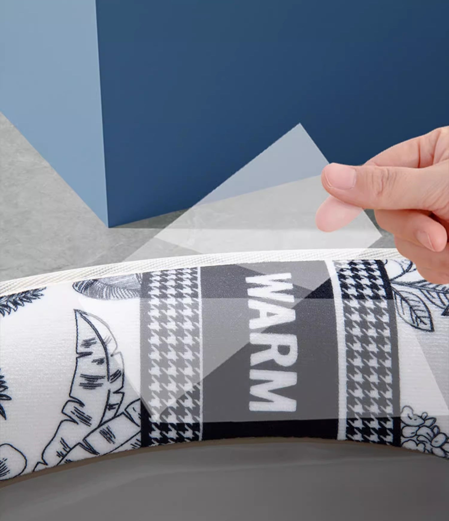 Made of high quality Flannnel, soft, warm and durable. Thick, quality and two seperately parts that fits well on the all kinds of toilets. Washable And Reusable. Stick to the toilet by static so you can take off anytime when you want and can stick again. The inside material is memory cotton, the rebound ability is very high. Size: 29.5CM*9CM