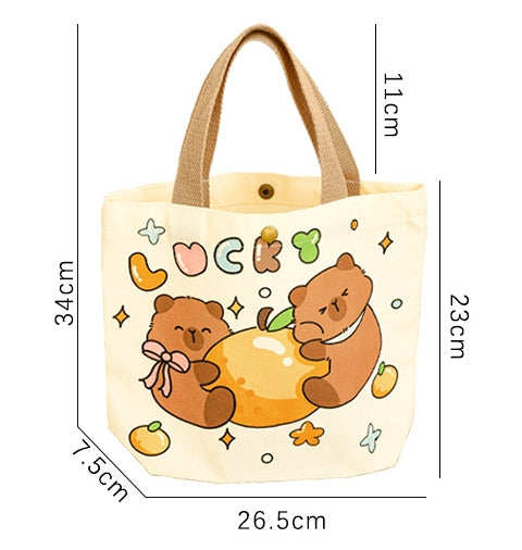 Capybara cute bear dog Tote Bag With Canvas Tote Bag Casual Reusable Shopping Bag With Washable Foldable Shopper Bag For Women Girls(Capybara)