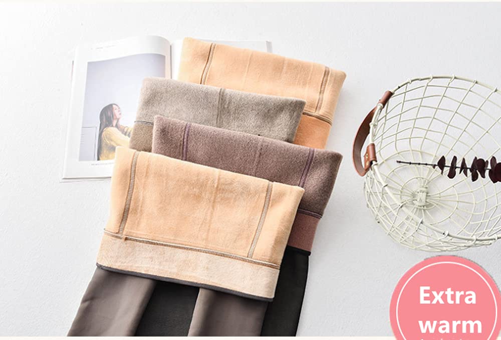 【WOMEN'S LEGGINGS SIZE】One-size winter leggings with lining are suitable for women of medium and slim body. UK size: 6-12; EU size: 32-38; height: 155cm-175cm; weight 40-65kg. 【WINTER THERMAL TIGHTS】Women's fleece leggings are suitable for cold weather, such as the whole winter; certain times in spring and autumn. They are double layer and has nude inside so u will look like just wear a thin tight. Magic Tights!It is able to keep you warm even at -15 deg C (5 deg F) 【Materials】90% Polyester Fiber, 10% ElastanHand wash and machine wash.The high-waisted leggings have excellent elasticity and very soft. 【HIGH QUALITY】These high quality winter leggings will serve you well through work and casual with their slim construction and stylish skinny look, stay cozy and warm with these leggings for fall, winter and spring season. The stylish look in classic colors fits well with dresses, skirts, boots, high heels, etc, Wear a dress on a pretty cold day or comfortably wear them under your pants, perfect for winter.