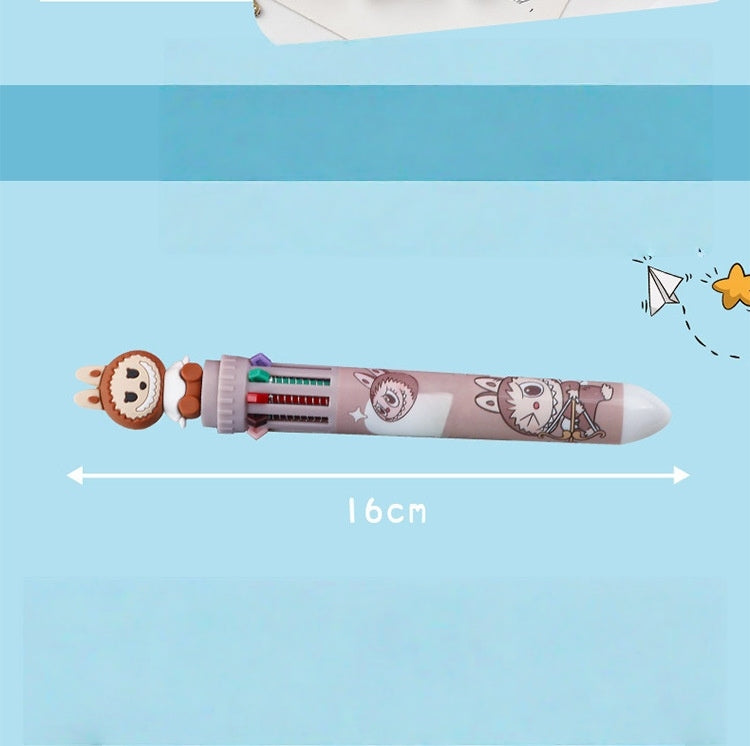 Multicolor teddy bear Pens 0.5mm 10-in-1 Retractable Ballpoint Pens 10 Colors Transparent Barrel Ballpoint Pen for Office Supplies and kids school (Labubu(random color))