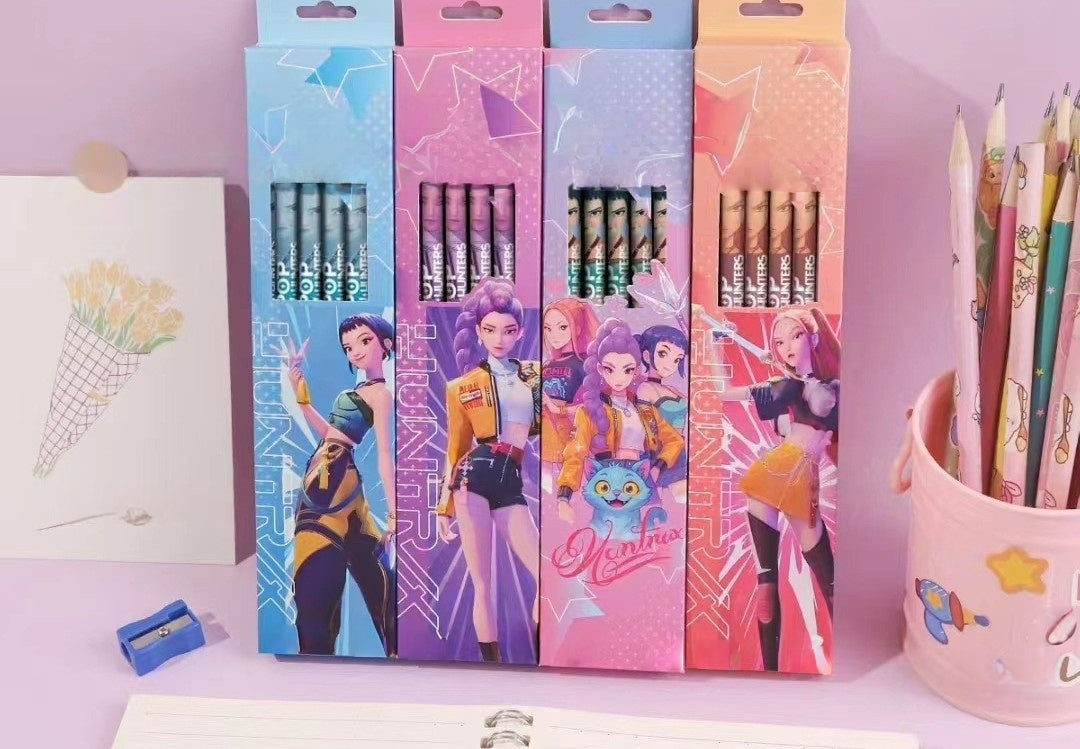 Pack of 12 Princess Spider HB Pencils with erasers Kids Children Party Bag Fillers School Office (KPOP(one pack colour random))