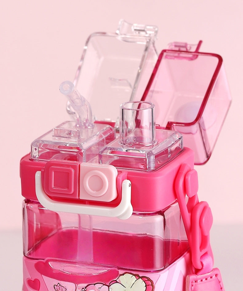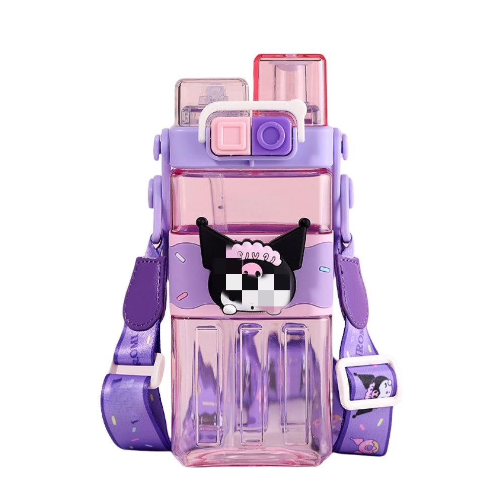 Water Bottle Reusable Kids 510ml PP with Two Lids Leak Proof with straw Lid BPA Free Drinking bottle (Kuromi)